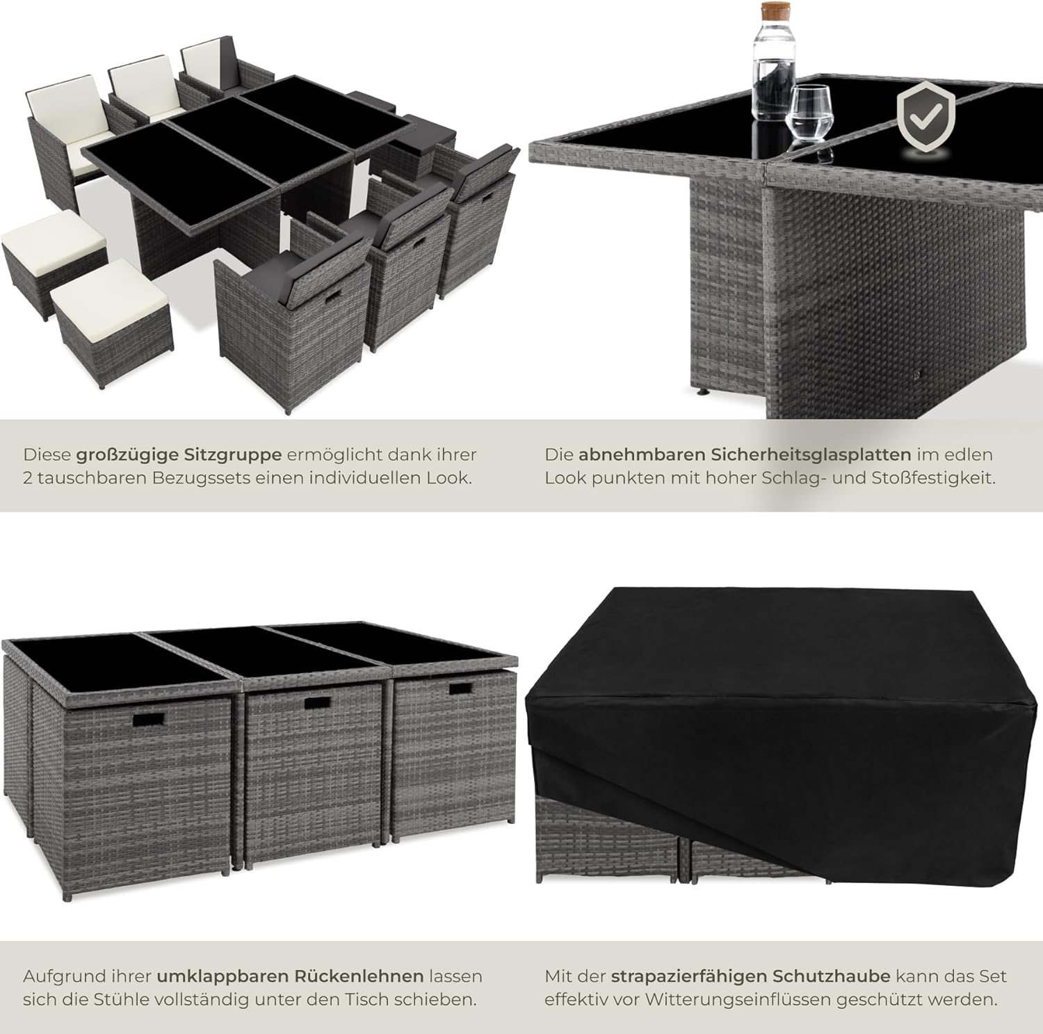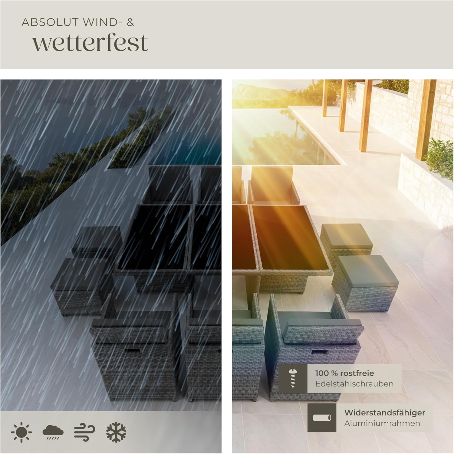 Hochwertiges Polyrattan-Material trotzt Sonne, Regen und Temperaturschwankungen.