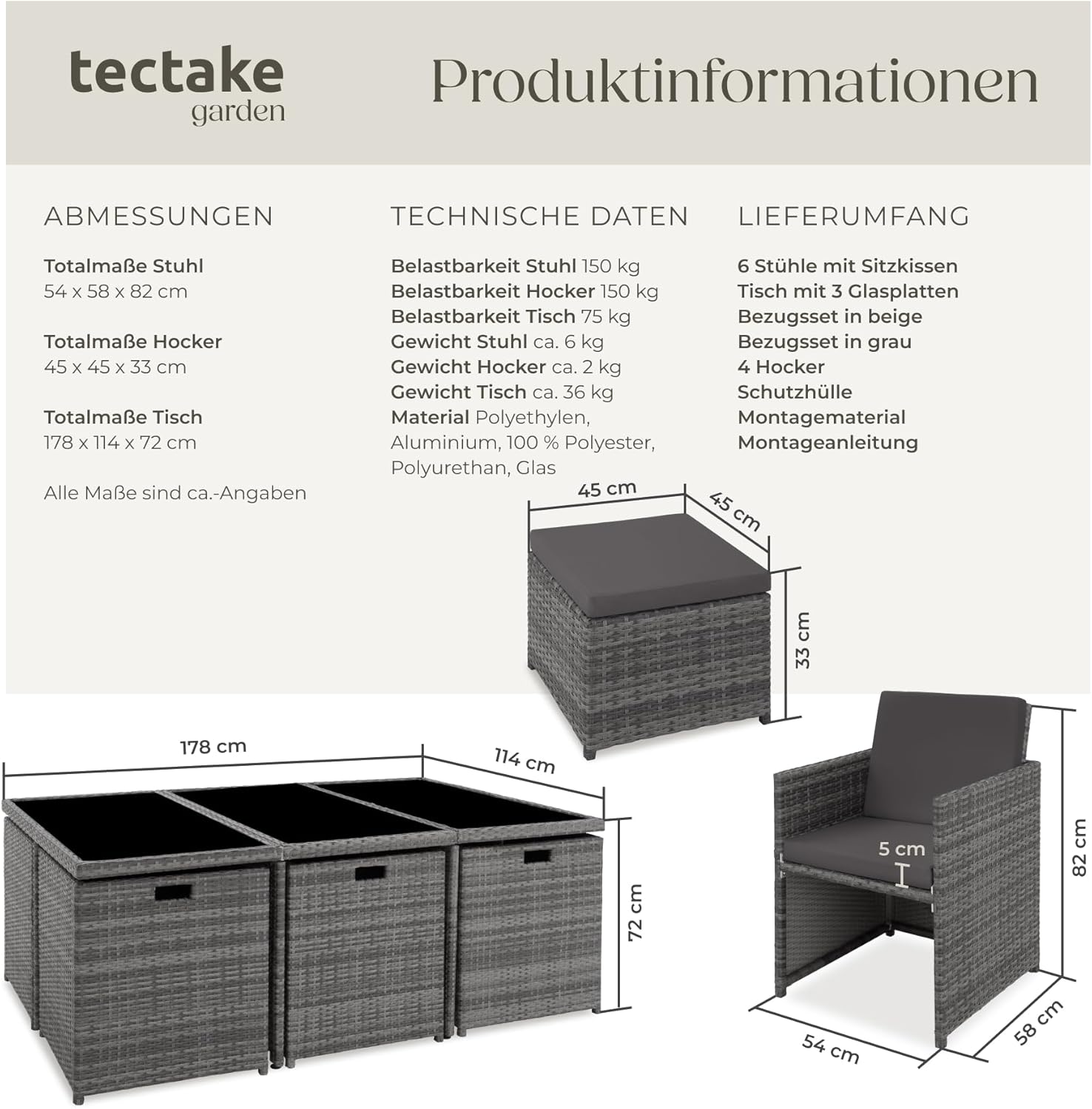 Polyrattan Gartenmöbel Set 7-teilig ✓ 6 Stühle + Glastisch ✓ Wetterfest ✓ UV-beständig ✓ Kostenloser Versand ✓ 2 Jahre Garantie